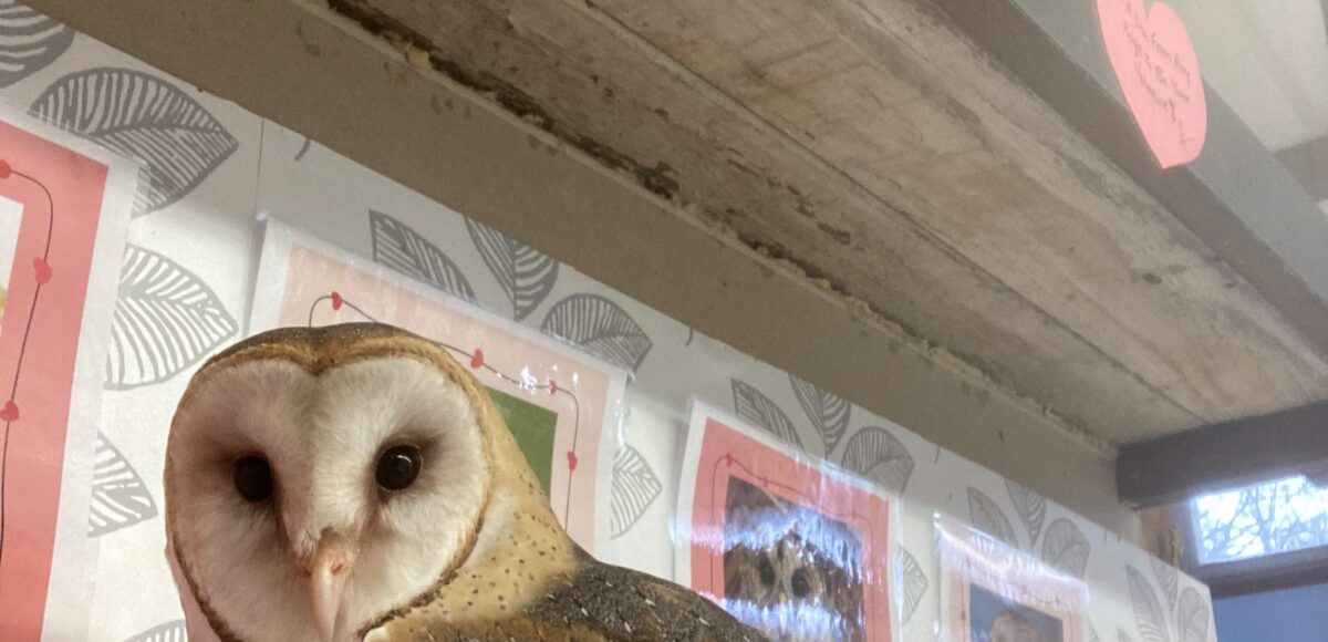 The day after Valentine’s Day, we had an event where visitors could make crafts both for themselves and enrichment for our crow ambassador, take photos with some of our educational birds, as well as buy animal hearts to feed to some of our educational birds. Then we got into the center in the morning to sheets of ice and a rainstorm. We decided that we should cancel that day’s event and move it to another weekend, we posted that it was moved and that people could still buy hearts online and we can video the birds eating them and send them out, but around 1pm a bunch of people still showed up for the event. We condensed what we could inside and still held some things that needed to be outside. The weather lightened up and I think it was a success.